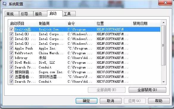 在系统设定中选取第四个分页“启动”,里面列出了所有和启动相关的程序清单,左边有勾选的应用程序将会在开机时自动载入,你可以根据需求来选择开机载入的程序。