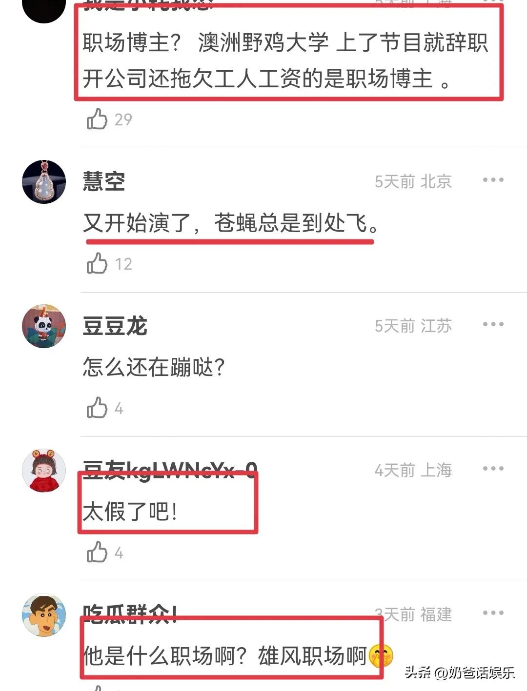 王能能在此之前,以搞笑博主、恋爱博主等被网友所熟知,此番突然冒出个职场博主自然是令人不知所云,有网友说他上节目前只是一名广告总监,目前已经成为全职自媒体博主了,还立什么职场博主,是雄风职场吧,这也太假了。