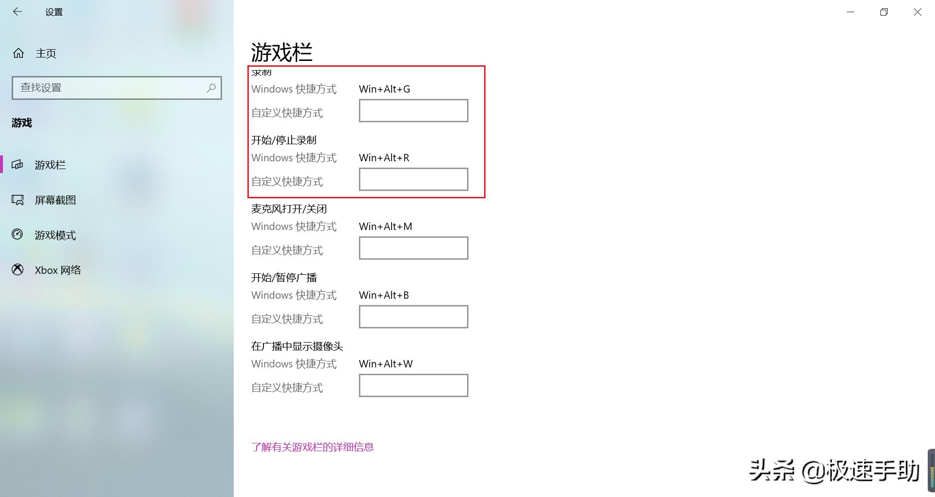 第四步,功能打开好以后,我们在这个界面的下方,就可以看到【录制】的快捷方式是【Win+Alt+G】。