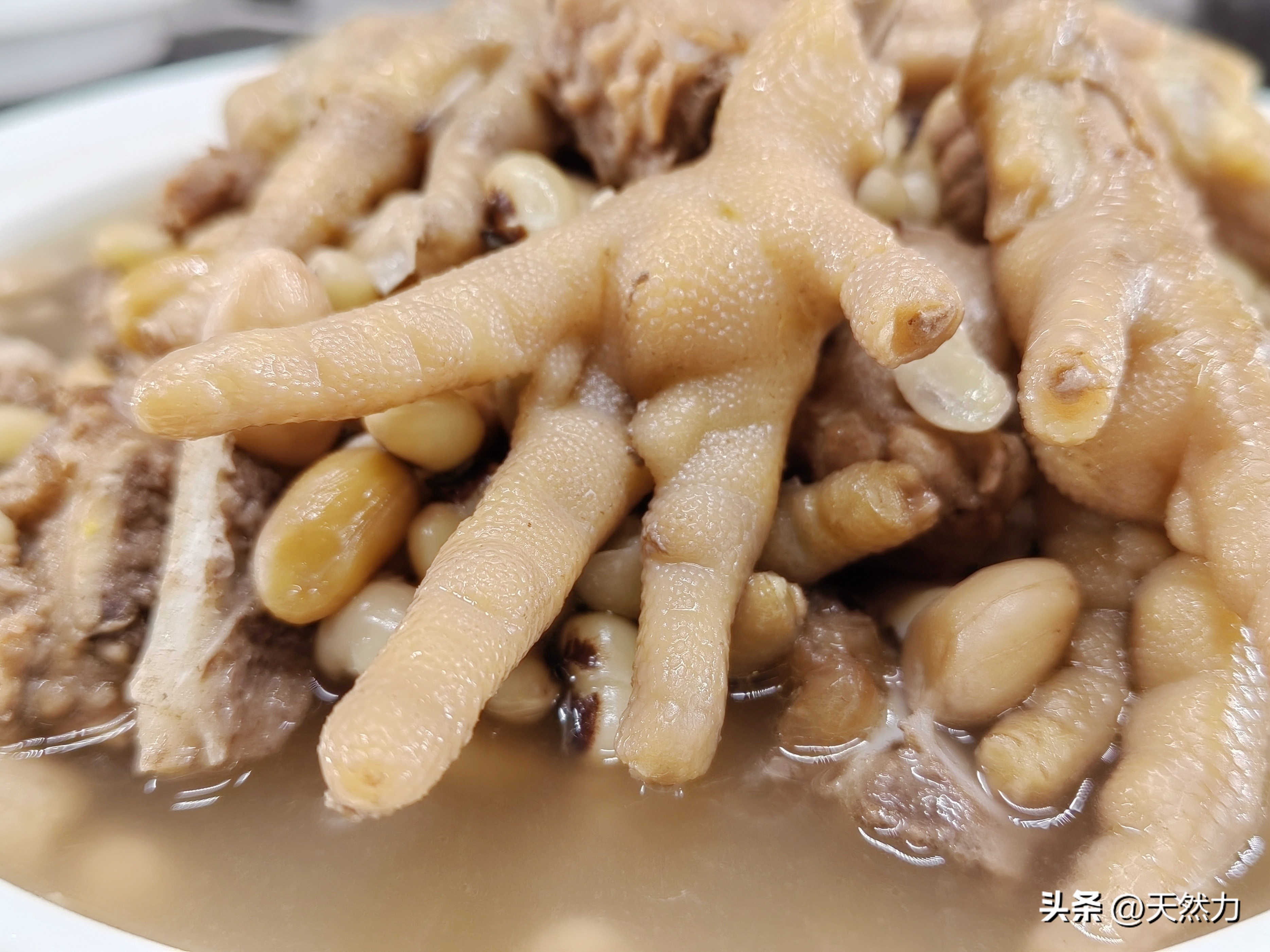 广式做法的花生鸡脚排骨汤,满满的胶原蛋白,清甜滋补又好喝