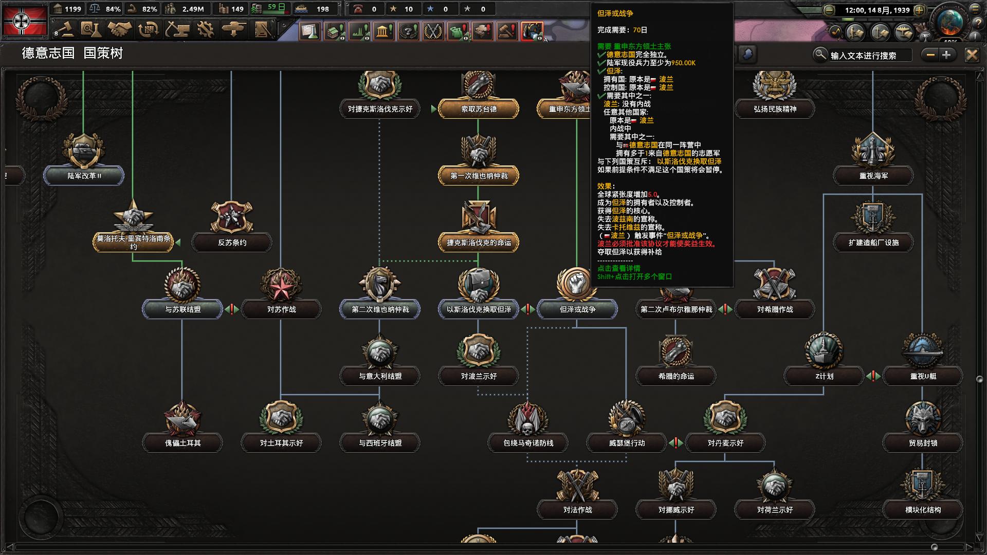 一些该点的都点完之后,我们把军队整理一下,现在1939年8月,德国拥有陆军122个师,军力规模100万。
