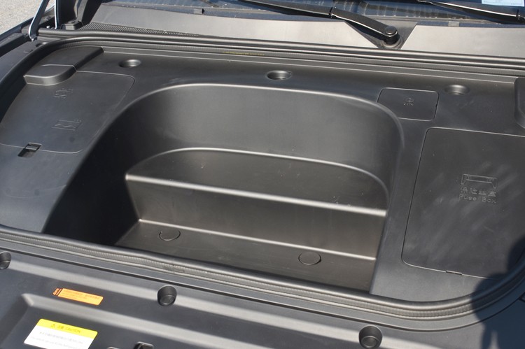 eπ007还配备了电动扰流板,它既能随速自动升降,还能手动升降,这几乎成了当下运动轿车的标配了。另外,eπ007还有两个隐藏的储物空间,一个是后备厢地板下方,有个非常深的储物槽,另一个是车头位置的前备厢,人性化体验做得还是很到位的。
