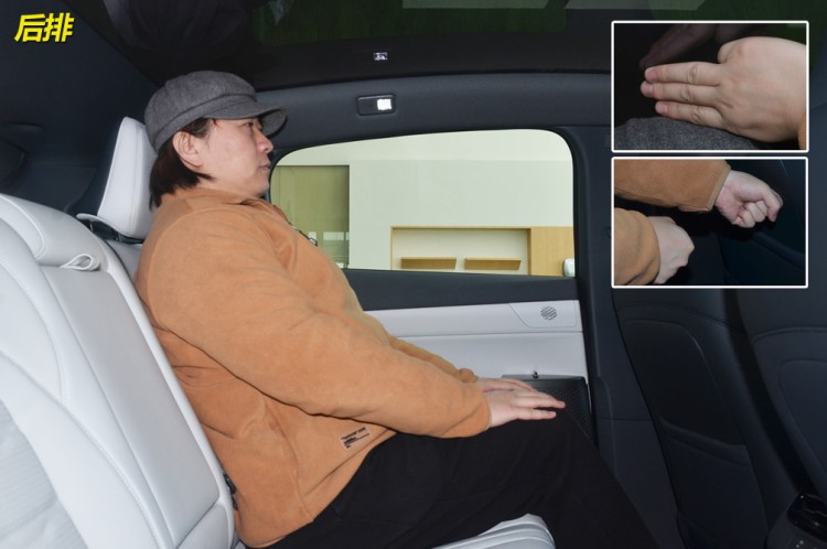 乘坐空间上,身高173公分的体验者在前排将座椅调整至最低位置,可以获得一拳+三指的头部空间,在后排可以获得三指的头部空间与三拳的腿部空间,虽然尺寸没有银河E8与比亚迪汉大,但空间与它们相比并不逊色。