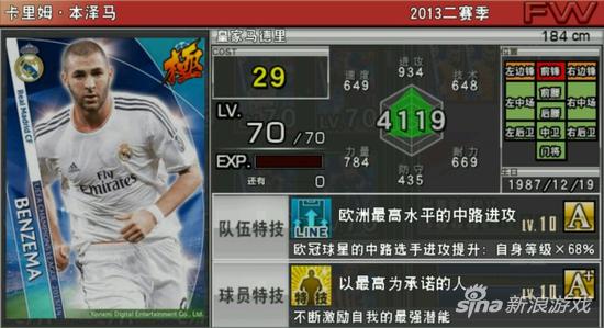 实况俱乐部球员信息:有‘等级’‘球员cost’‘位置信息’,还有‘进攻’‘防守’‘技术’‘速度’‘力量’‘耐力’等能力值,一些稀有的球员还会有队伍特技或者是球员特技。