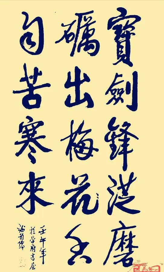 “宝剑锋从磨砺出 梅花香自苦寒来”书法作品,寓意深刻,有很好的励志作用。适合挂在公司办公室、大厅、会议室、工作室、客厅、书房等场合。