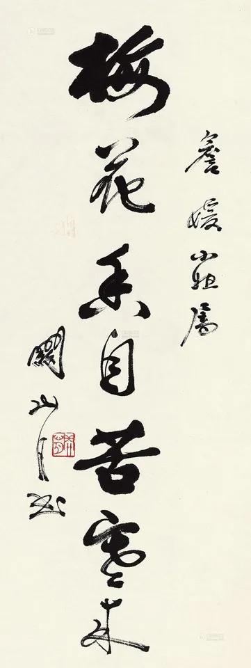 关山月的这两幅作品,第一幅墨色较枯,笔力雄健,苍浑古茂。第二幅用笔灵动,圆转流畅,华美俊秀。