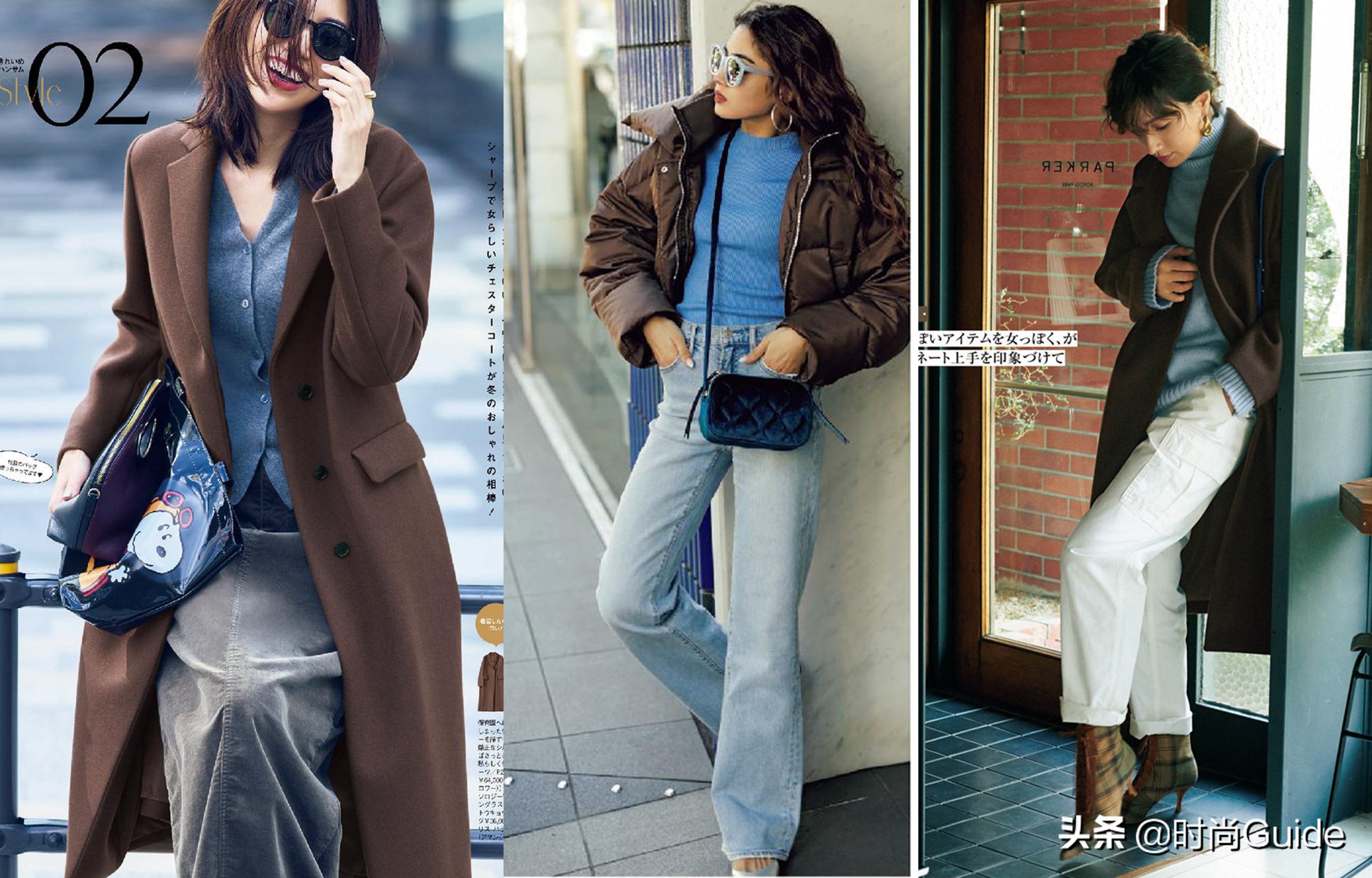 巧克力色不适合大面积的使用,所以长大衣(长款羽绒服)不建议大家选,一是非常挑人、挑肤色;二是对搭配功底的要求也极高。小面积的内搭都可以选,比如以下这几款。