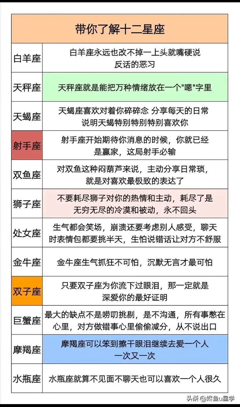 摩羯座真的是最不会关心人的一个星座,或者是说他们不在根本就不在意情绪上的价值。当某几个摩羯座为了哄你开心,而做出各种各样他们不会做的事情时,那么他们是真的喜欢你。