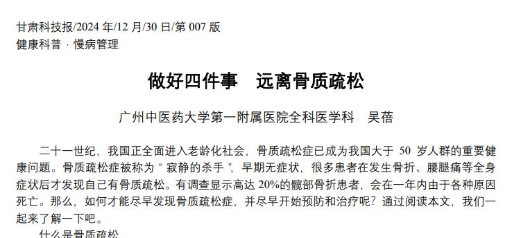 [1]吴蓓.做好四件事远离骨质疏松[N].甘肃科技报,2024-12-30(007).