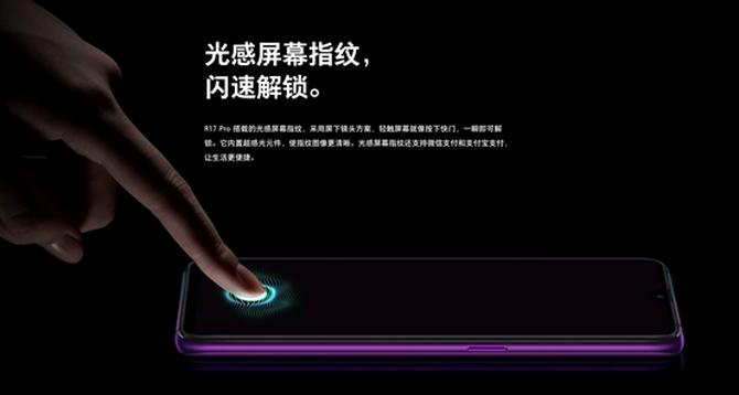 另一种常见的屏下识别技术是光学指纹识别,OPPO的R17系列就使用了这项指纹识别技术。
