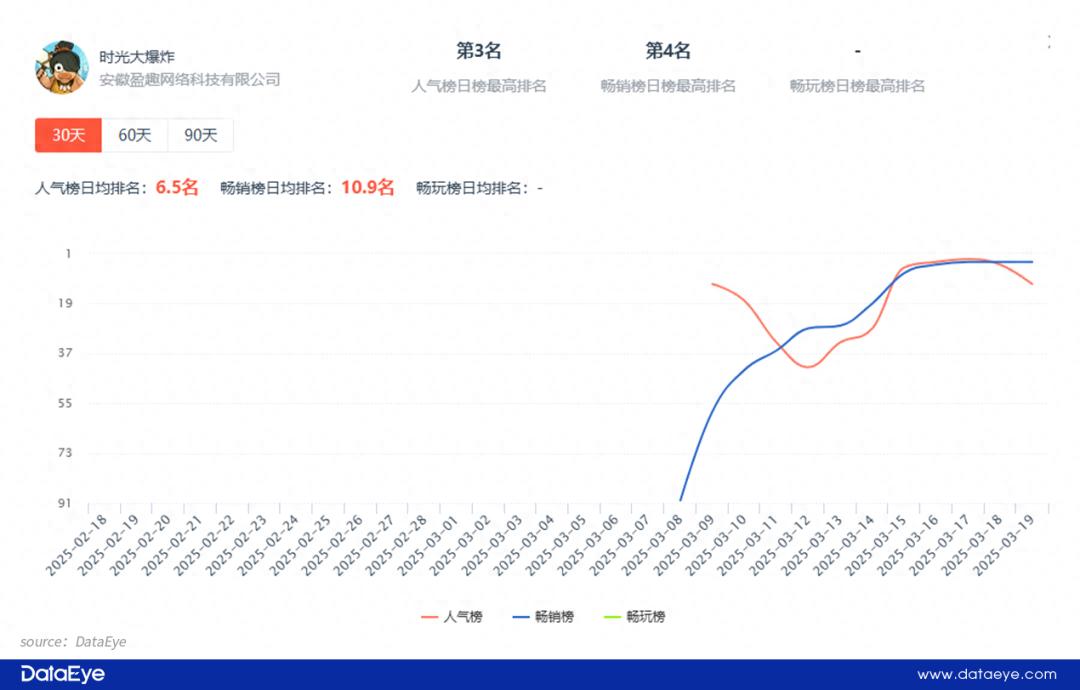 冲入TOP5,三七又一小游戏《时光大爆炸》跑出,数据如何?
