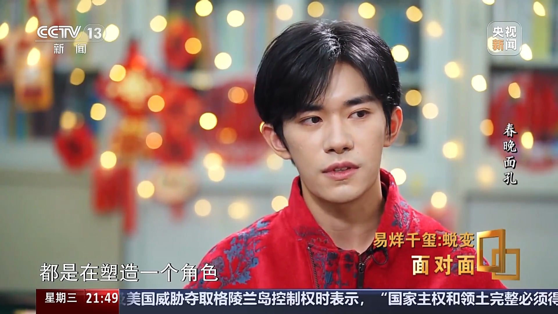5年前参加总台春晚时,易烊千玺曾接受《面对面》栏目的专访,那时候他还是中央戏剧学院的一名学生,凭借《长安十二时辰》和《少年的你》两部影视作品中可圈可点的演技,刷新了人们对他的认知。
