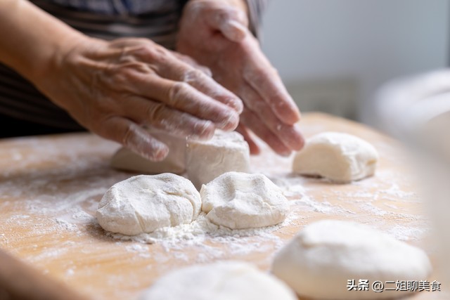 但是,如果你用的是老酵子发面的话,就特别容易发出酸味儿。因为老酵子它里面的酵母菌不纯,有其他杂菌。这个时候我们就要用食用碱或者小苏打去中和这个酸味儿。不然蒸出来的包子也是酸的。