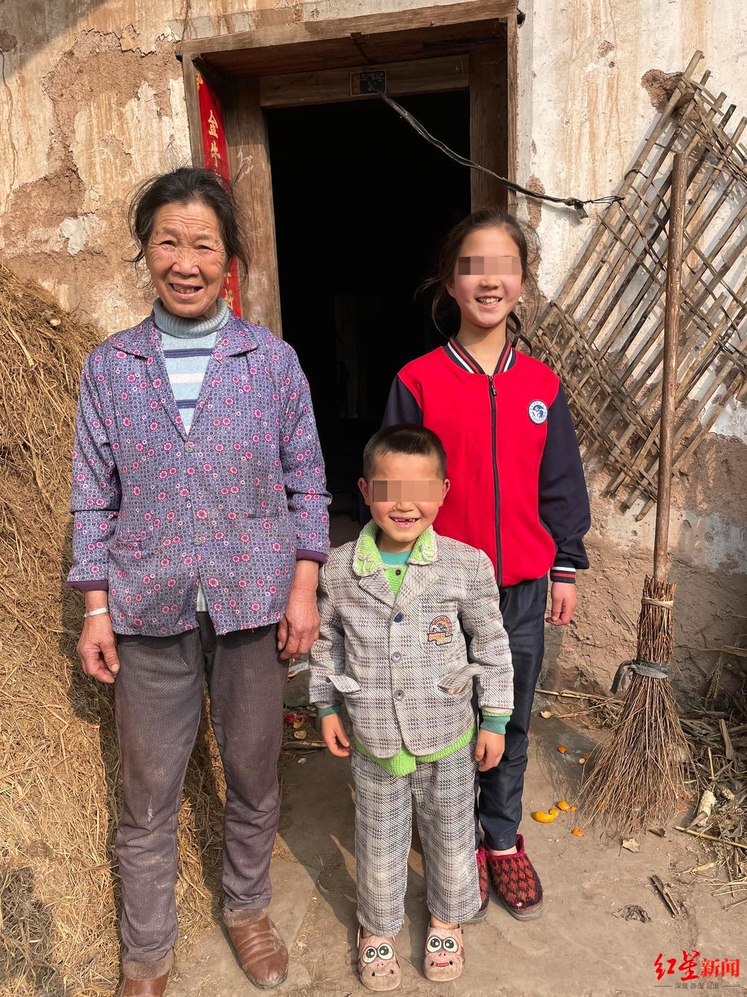 ↑“奇迹宝宝”赵平安和奶奶、姐姐
