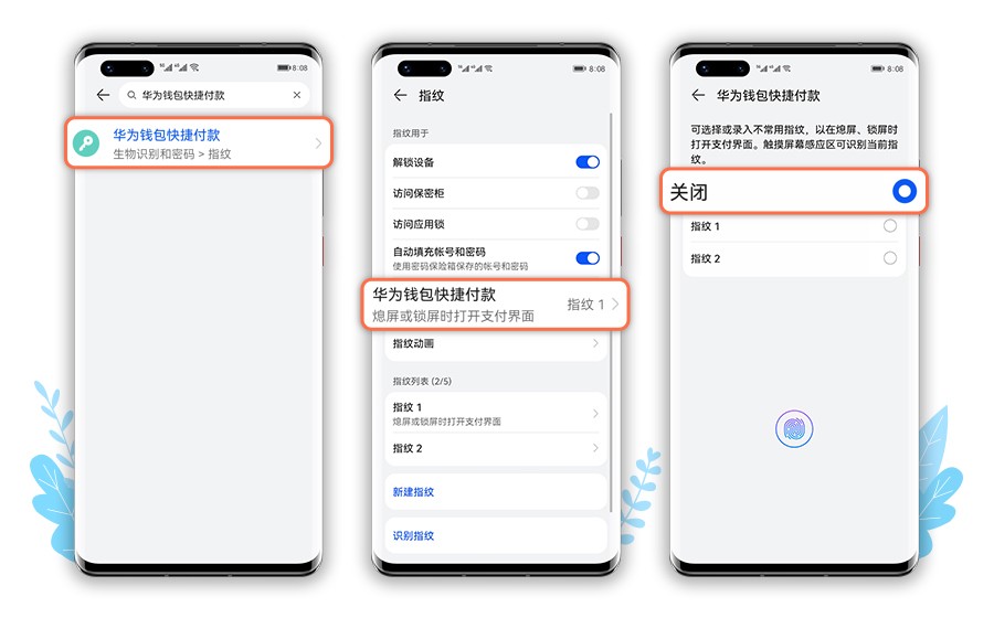 可能是您将常用的手机解锁指纹和华为钱包快捷付款指纹共用了同一个指纹。按照下面方法3秒KO问题~
