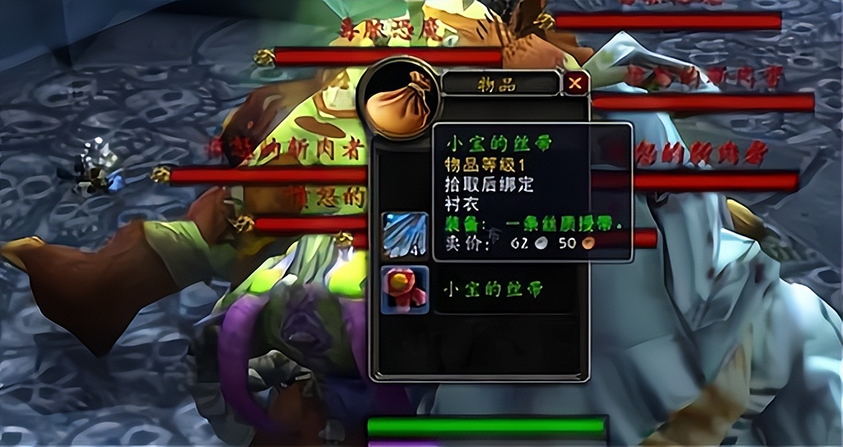 当然怀旧服中小宝的丝带值什么价钱还得看掉落,数据库中显示掉率高达30%,如果真有这么高的掉率,这件衬衣轻松人手一件,并不值钱。