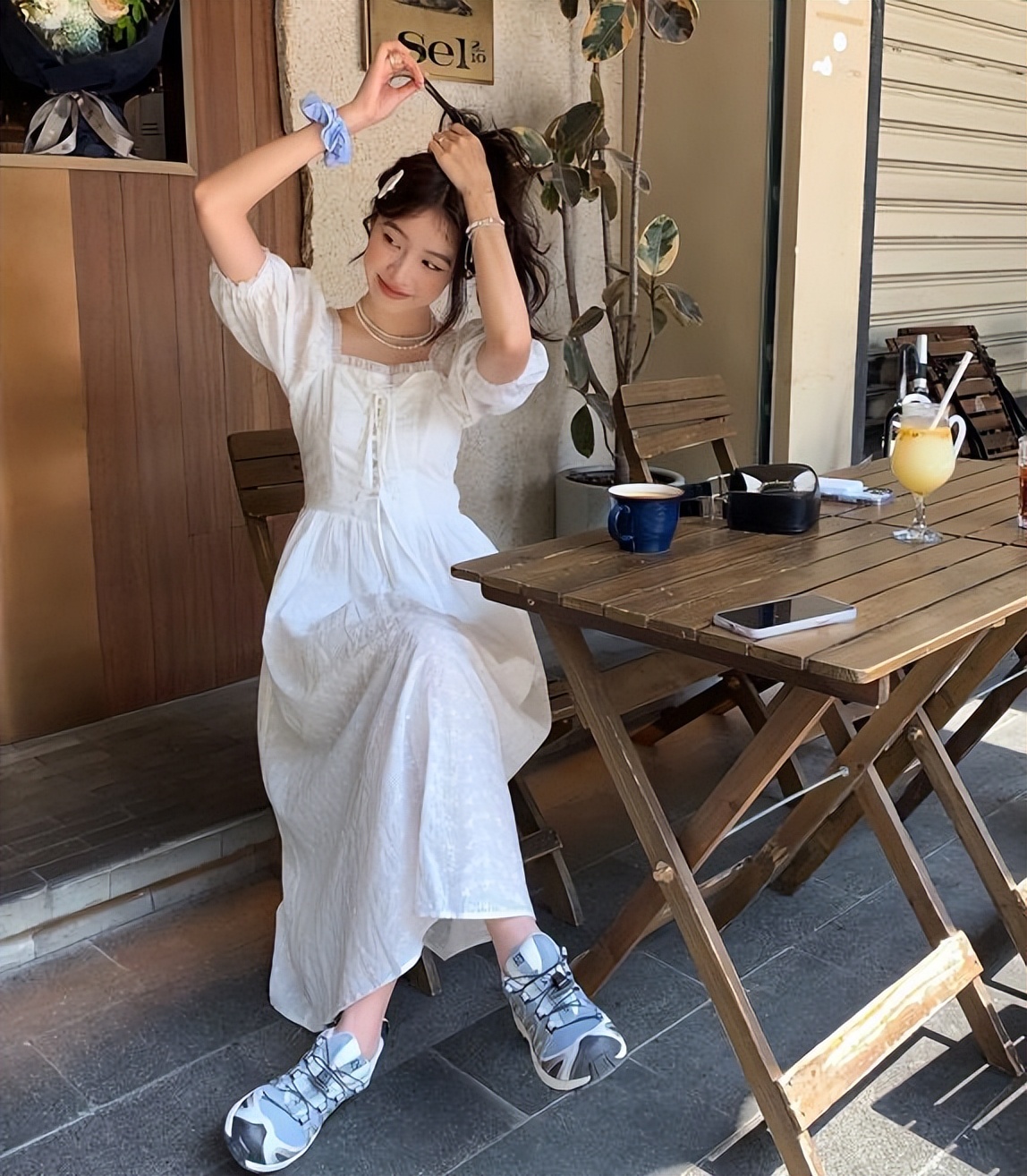 1、白裙子+运动鞋
