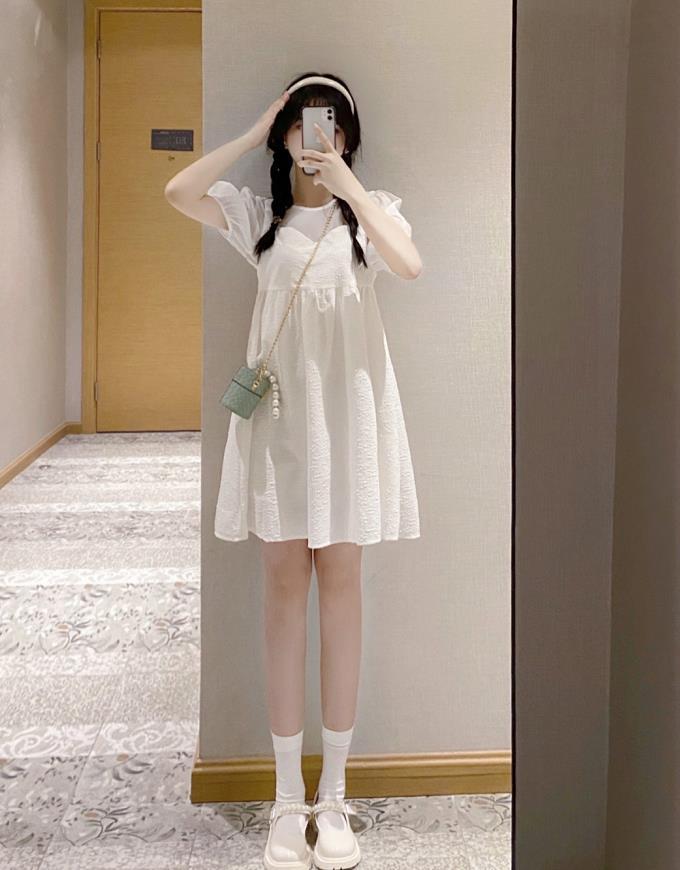 很适合小个子女生的一条白裙子,膝盖以上的长度,对于大腿粗的身材也是比较友好的,至少能把大腿粗的缺点都给隐藏起来,宽度适中的裙身,既对身材进行了修饰,又遮掩起身上的缺点,一举两得。
