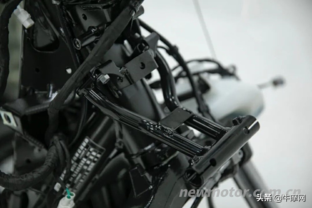 在车架与发动机的连接部位,两车都采用了一种叫“四杆结构”的设定,通过特殊的减振套结构,来缓解振动表现。