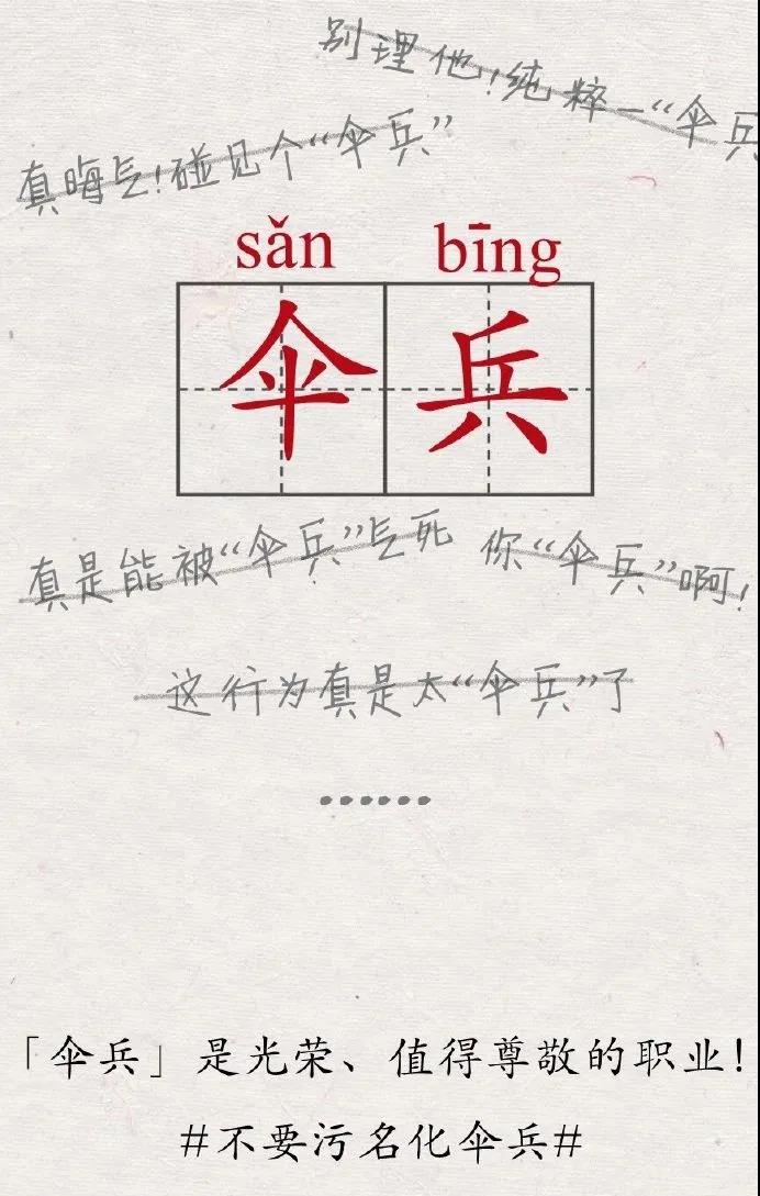 网络语言以其强大的创造力和丰富多样的形式而受到大众喜爱,但语言的使用并不是无边界、无底线的,随意解构、歪曲语言的本意不仅是对语言规则的一种破坏,更是对网络环境的一种污染。除了“伞兵”之外,还有许多词汇,诸如“同志”、“小粉红”、“小姐”、“战狼”等,都在网络时代背上了原本不属于自己的“污名化”含义。