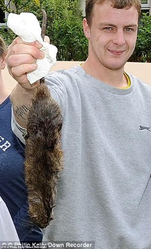 这是北爱尔兰唐郡一个居民捕获的巨鼠;