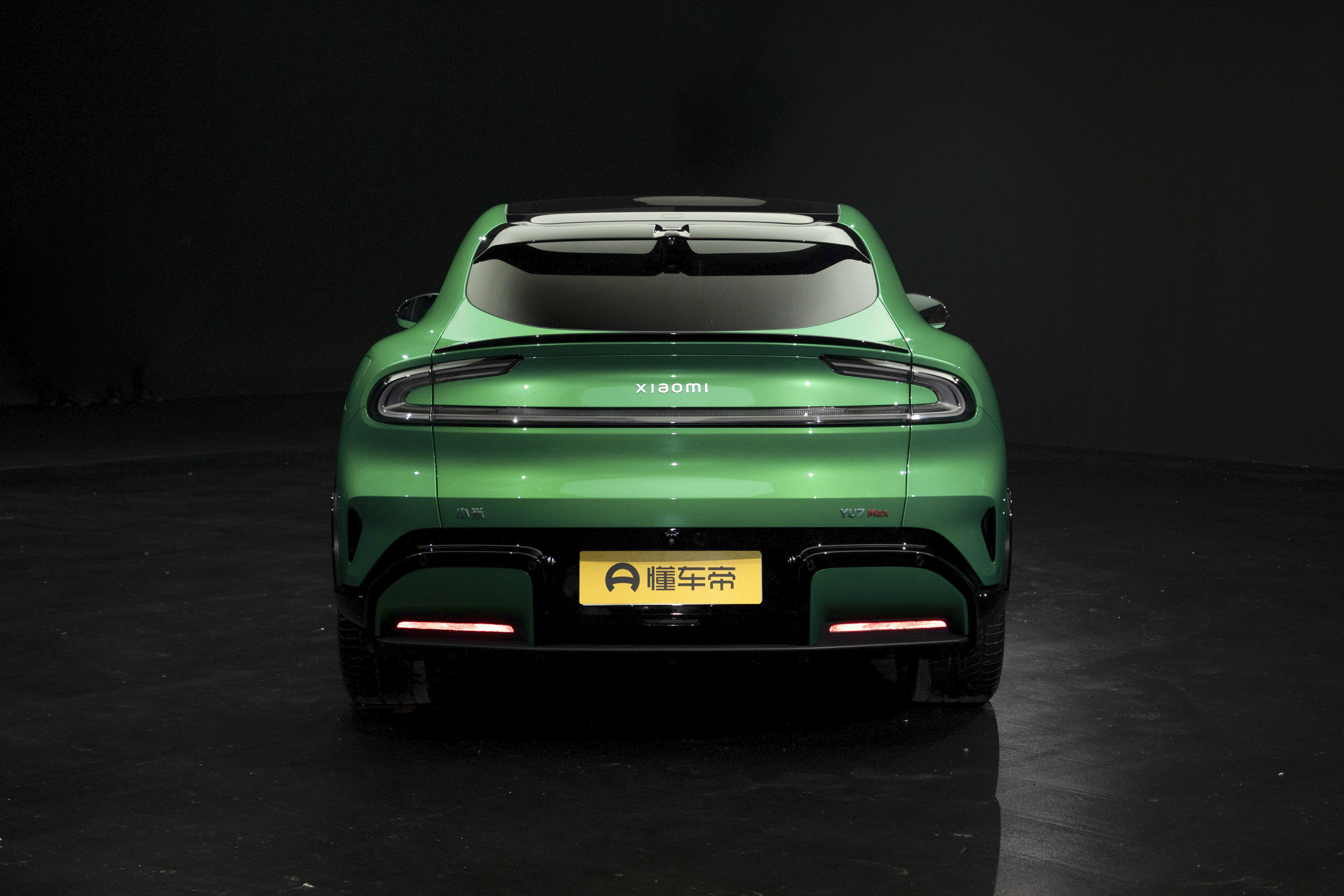 此外,小米YU7在车顶位置配备有镂空式扰流板,车尾还设计有“小鸭尾”造型后扰流板。后包围造型延续小米SU7的设计思路,使用亮黑色以及与车身同色的装饰件。实拍车型为Max版本,尾门左右两侧分别为“小米”和“YU7 Max”标识。