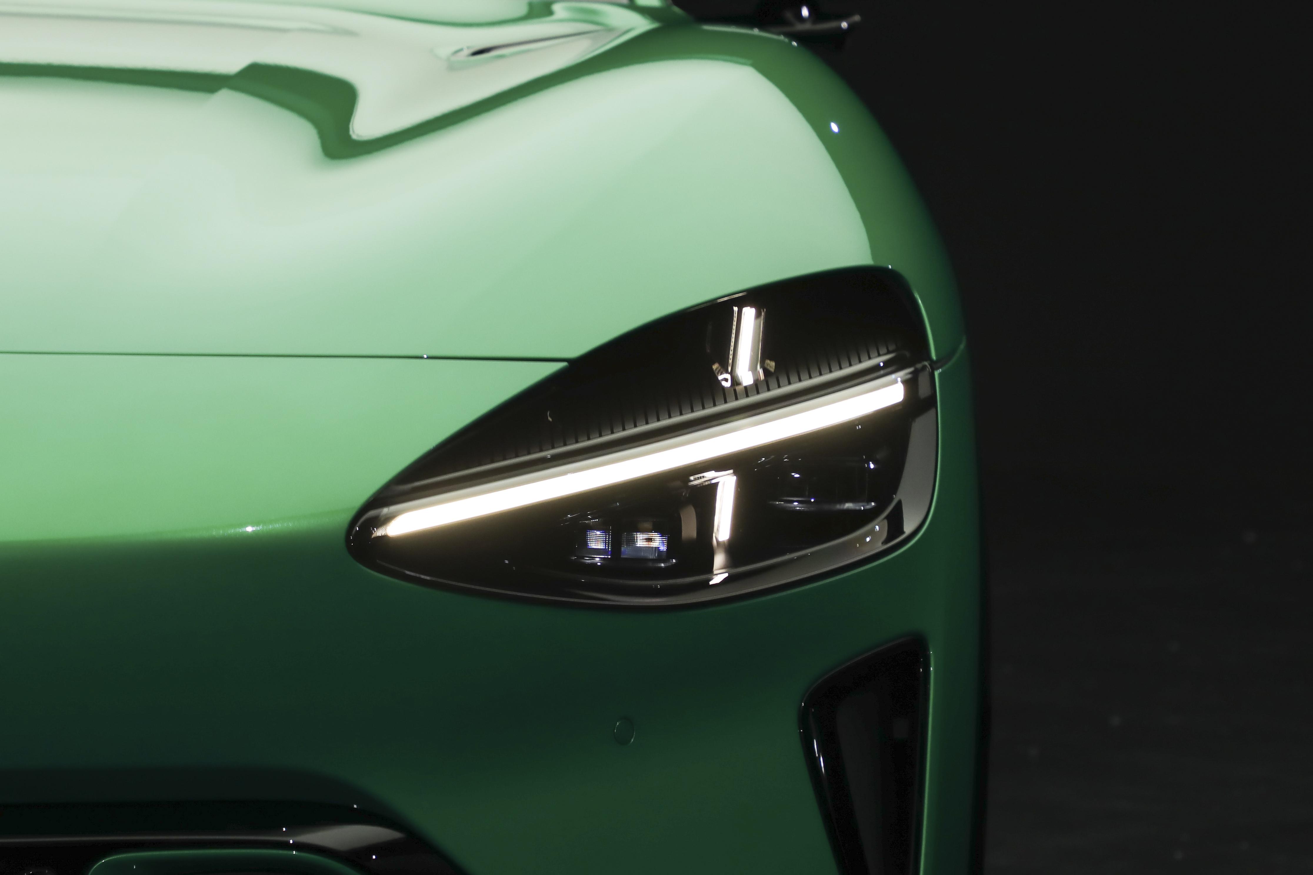 虽然小米YU7大灯轮廓与小米SU7基本一致,但是细节方面有较大的改动,其中灯组上半部分为镂空设计,并嵌入了风道,与前舱盖打通。此外,该大灯还升级了180度超广角照明。