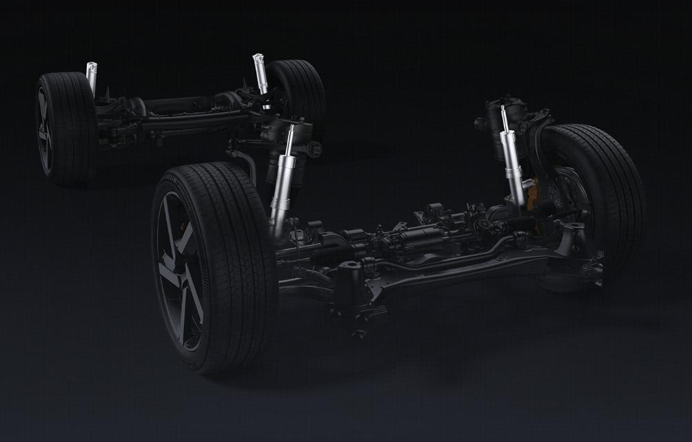 底盘部分,小米YU7配备有前双叉臂+后五连杆独立悬架结构,并配备闭式双腔空气弹簧和连续阻尼可变减振器,其中闭式双腔空气弹簧具备75毫米最大调节范围,可实现最高222毫米离地间隙。