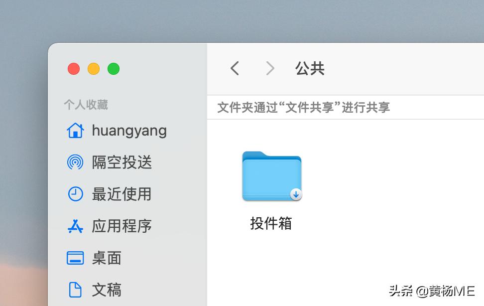 如果你打开其他用户的「公共」文件夹,会发现里面的「投件箱」文件夹图标跟普通文件夹也不太一样,右下角有一个向下的小箭头。