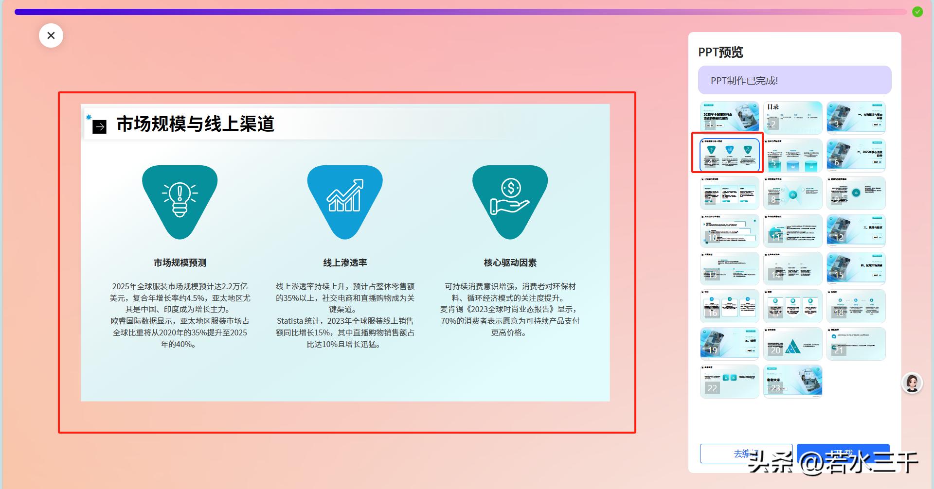根据上面的内容及PPT模板,自动生成的PPT已经生成,点击右下角的下载,可以免费直接下载