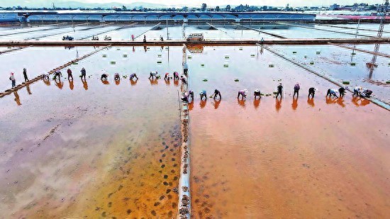 4月23日,红河哈尼族彝族自治州蒙自市草坝镇袁隆平超级杂交水稻新品种“粒两优8022”育秧完毕,如期进行移栽。1500盘秧苗移栽至水田,计划种植100亩,目标产量为亩产1200公斤。
