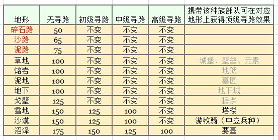 结论1:举例:当你带队杀入沼泽的时候,如果没寻路术,记得在野外巢穴里偷偷招募要塞的兵种,几个就好,推荐龙蝇,能极大的提高移动速度。进入雪地和沙漠,按上面的资料也可以依次类推。