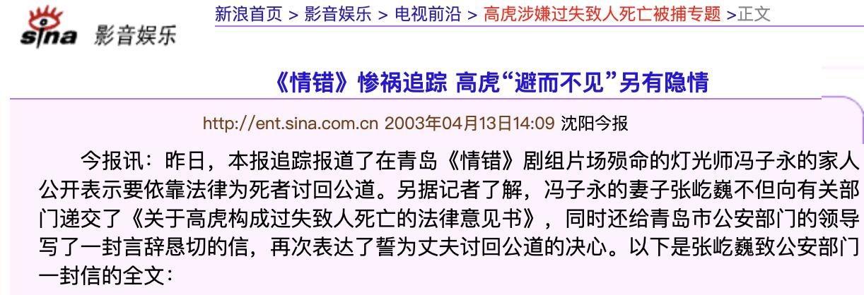 2012年,高虎在北京买了房子,请来施工队装修,结果一名工人触碰到高压电线,当场毙命。