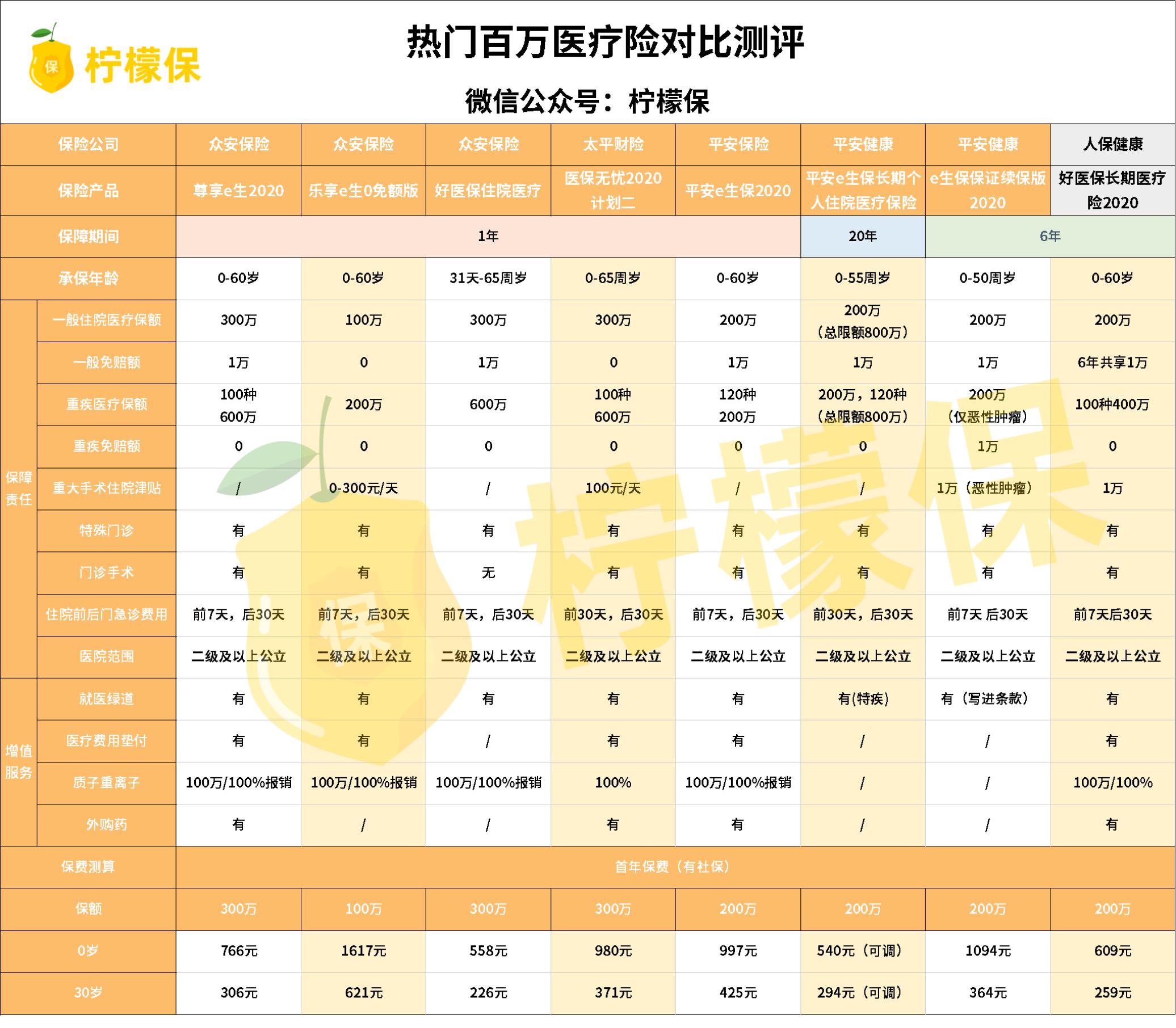 √ 追求一般医疗0免赔:乐享e生0免赔版,医保无忧2020计划二