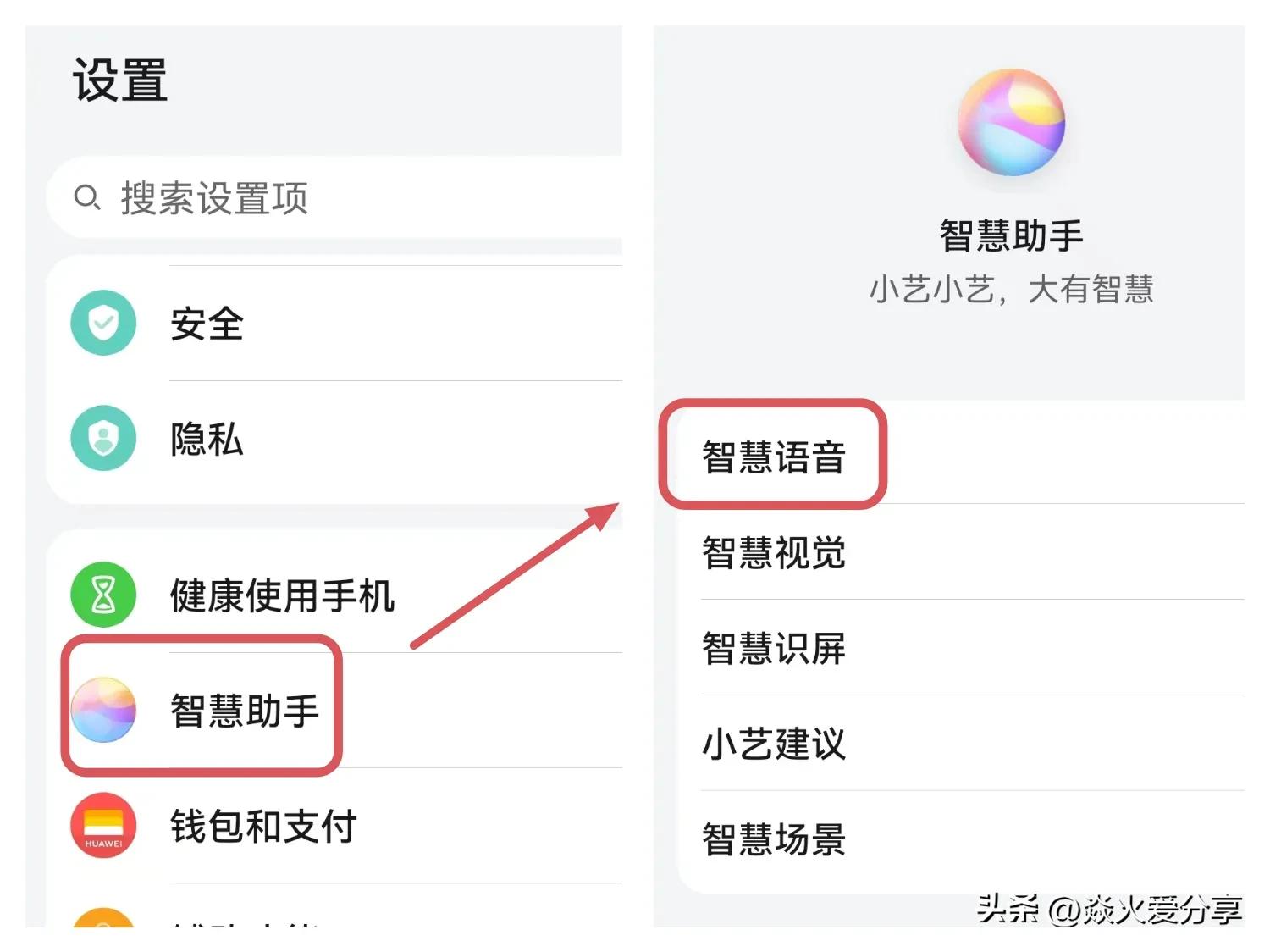 这里你对着手机喊“小艺小艺”,小艺助手如果没反应,说明这功能你没有打开。这时候可以打开手机的设置,找到“智慧助手”,选择“智慧语音”。
