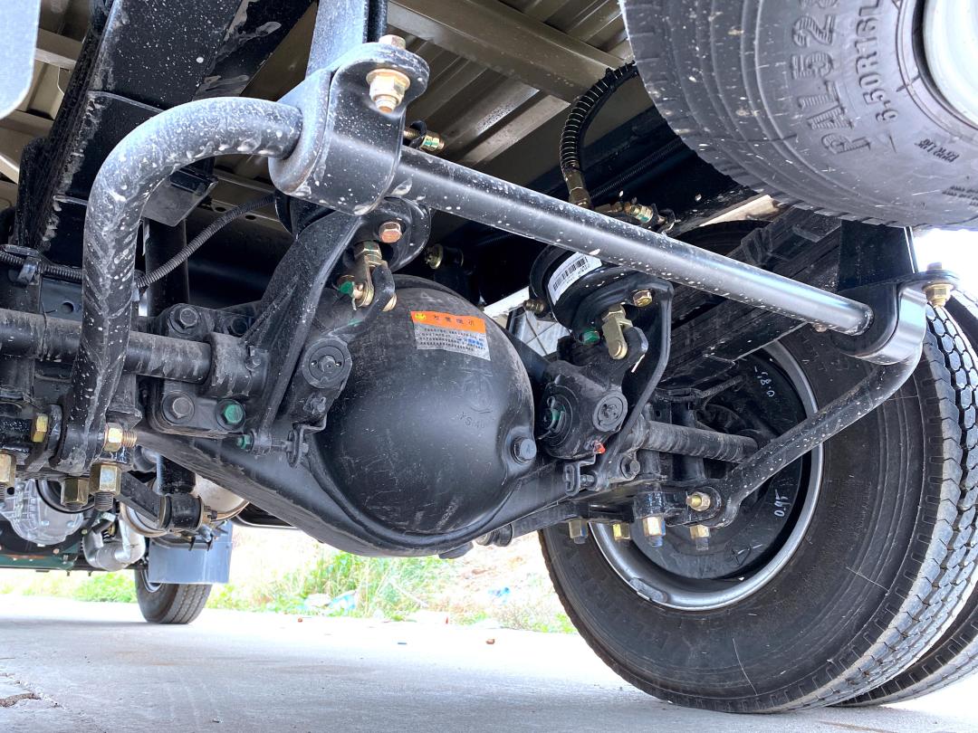 货箱尺寸为3500*1750*1750mm,将上面的竞品来看要小巧不少,如果有需要的话用户还可以选择高度355mm的栏板箱;选用的是2.1吨的驱动桥,后双胎,速比4.875,这也是微卡产品比较常见的配置了。