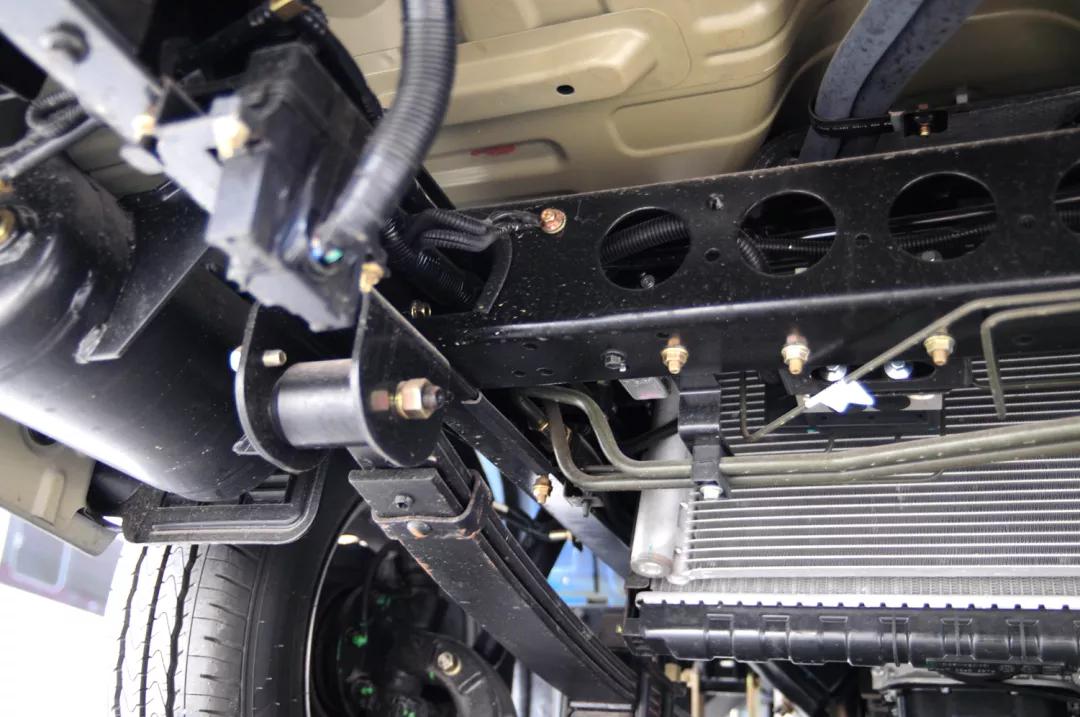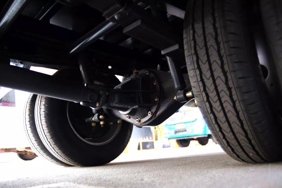 除此之外,变速箱根据动力配置可以选择星瑞5挡或者万里扬6挡;后双胎、前后稳定杆这种在微卡上不常见的配置也给你安排上了,全车匹配的是6.50R16LT尺寸的轮胎,油箱容积70升,保障续航。