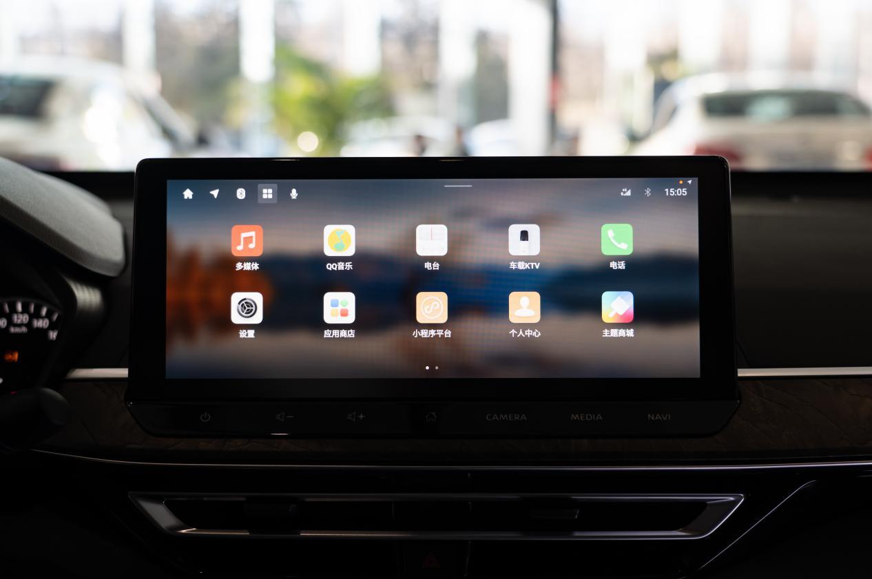 12.3英寸的中控屏显示效果也很不错,清晰度很高,并且UI设计也比较简约。内置了Nissan Connect超智联2.0Plus系统,支持双语音分区唤醒、QQ音乐、导航以及车载KTV等,在合资里算是比较好用的一套车机了,日常使用完全足够。