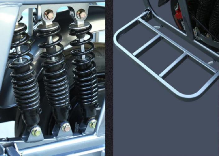 细节方面,宗申TL3的长宽高尺寸为2150×860×1090mm,整车标配内簧液压减震,后6根弹簧减震,车辆行驶,不会颠簸,采用双侧侧支撑腿结构设计和底部支撑腿,在载重情况下,也可以放心驻车,卸货车辆不晃动、不倾斜,更为方便实用。