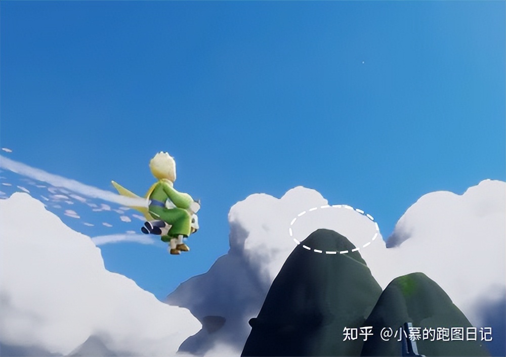 前往霞谷之后上云层一直飞,直到我们看见了一个小山坡;这里可以找到小王子,和他对话进入动画;