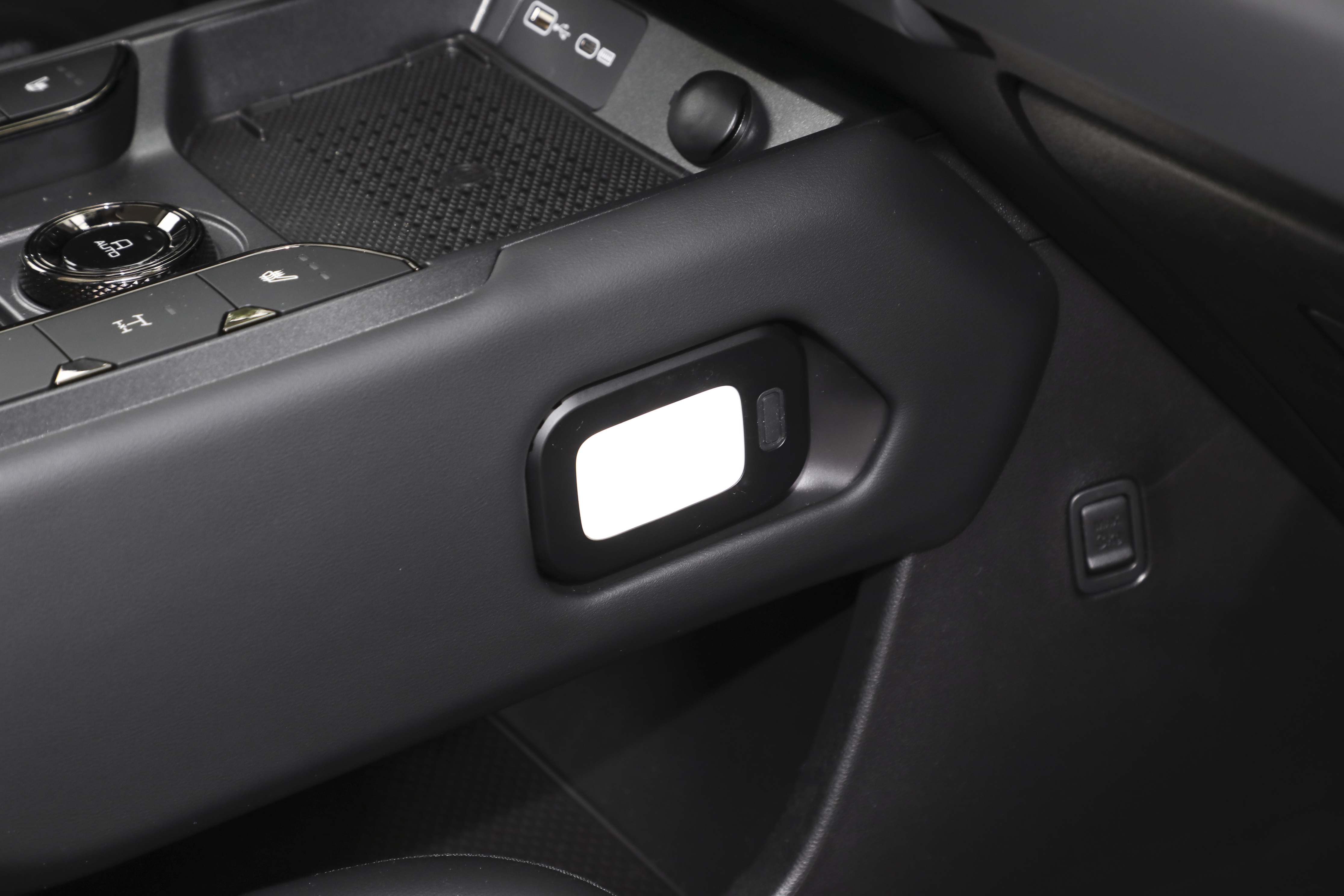 在改用怀挡后,哈弗猛龙燃油版的副仪表台布局也发生变化,主要是驾驶模式旋钮前移,后方配备竖向布局的储物格,远端依旧为手机无线充电面板,旋钮两侧则为控制座椅加热、后桥差速锁的按键,以及电子手刹等。同时,车辆副仪表台外侧依旧会提供户外应急灯、挂钩等实用性配置。