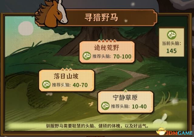 寻猎野马功能在少年期的第20个回合左右触发,根据角色的头脑值进行寻马。
