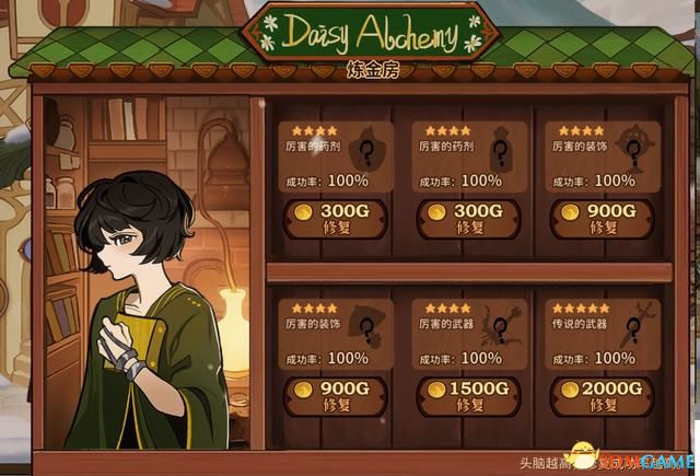 最后是炼金房,依据玩家的头脑值进行物品的修复,成功率也受技能的影响。