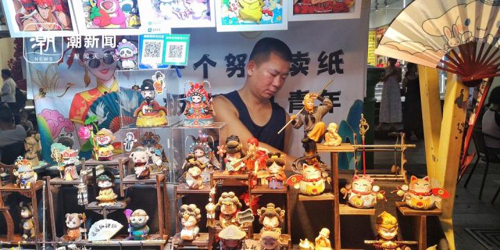 油漆画、Q版画像、题扇面、手工仿古首饰……当下流行的或曾经流行的在这儿都能略窥一二,手艺的传承,创想的迸发,都集聚在龙游路的夜晚。