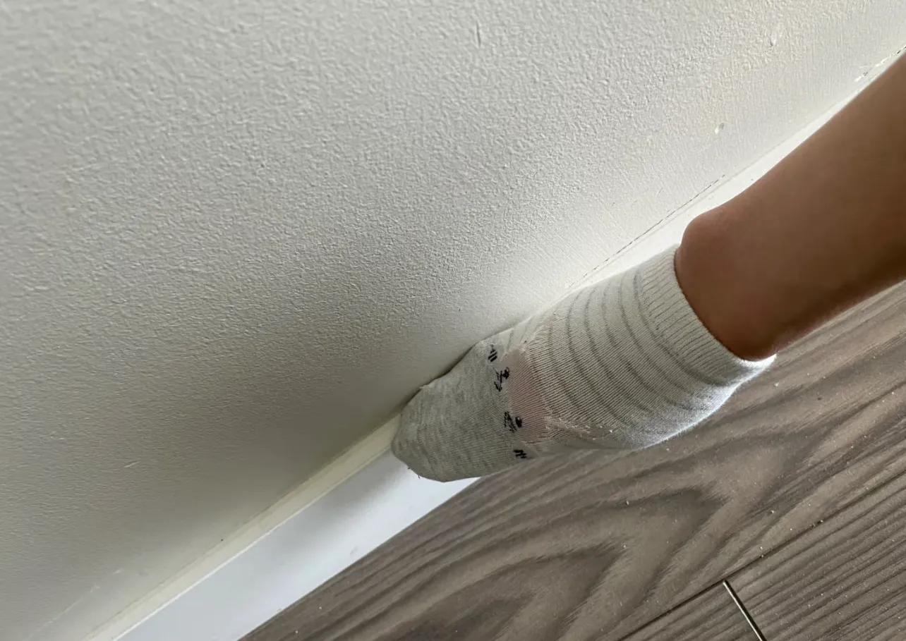 就这样,孩子手上套着袜子,把踢脚线、柜子下方、床下栏杆等都擦得干干净净。
