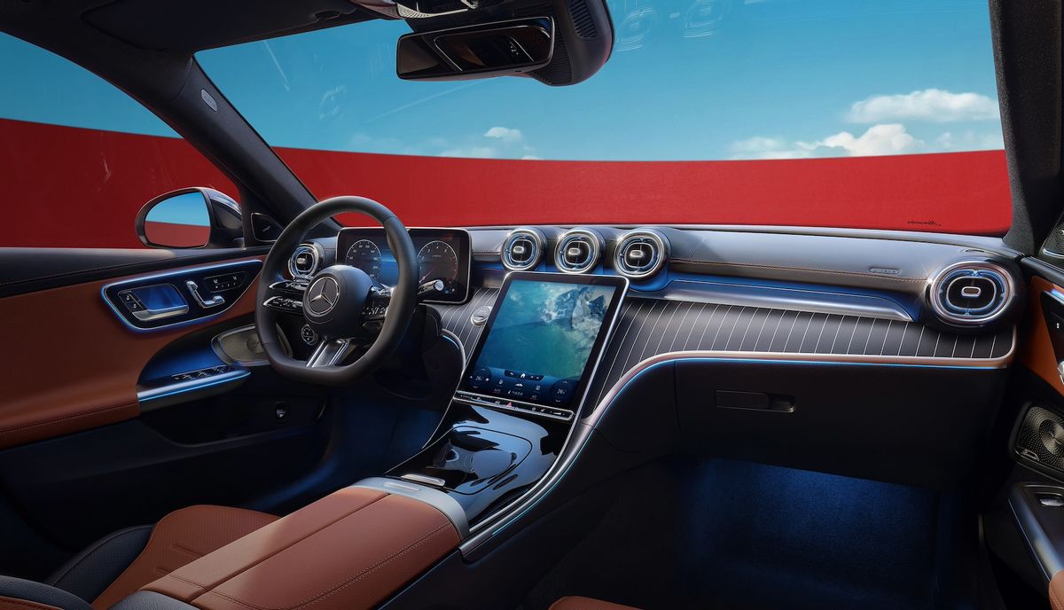 来到新奔驰C级的内部,我们看到新车与现款在售车型基本保持一致,仪表台采用纵置中控大屏,这与S级、E级保持一致。另外在智能交互方面,新奔驰C级配备了第二代MBUX智能人机交互系统,支持27种语言交互,此外还配有高德定制导航。