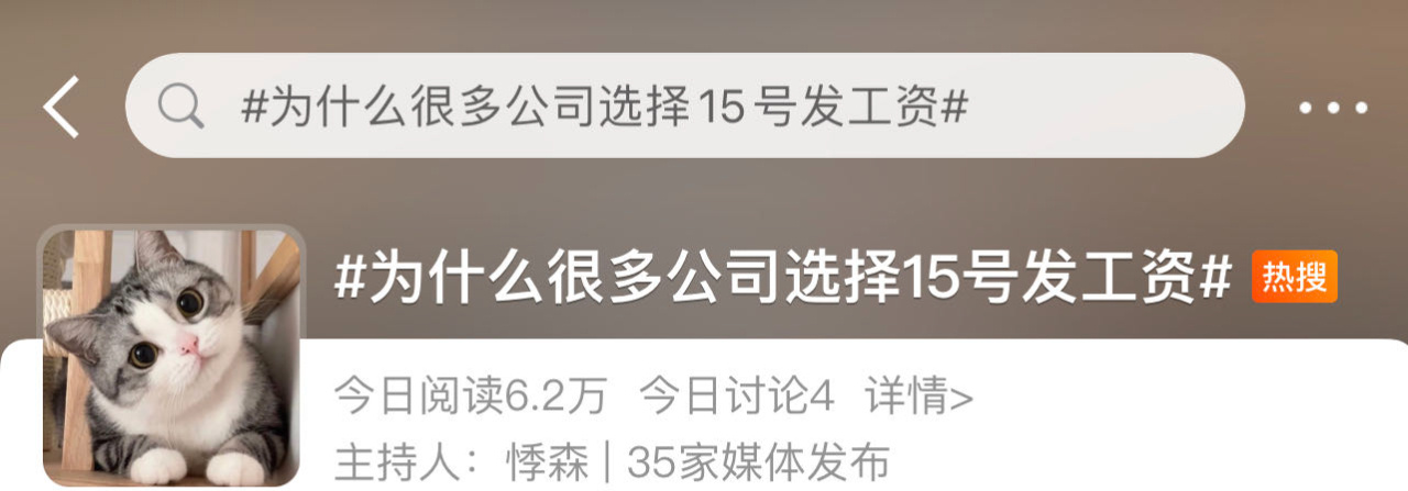 近日,“为什么很多公司选择15号发工资”的话题冲上微博热搜。