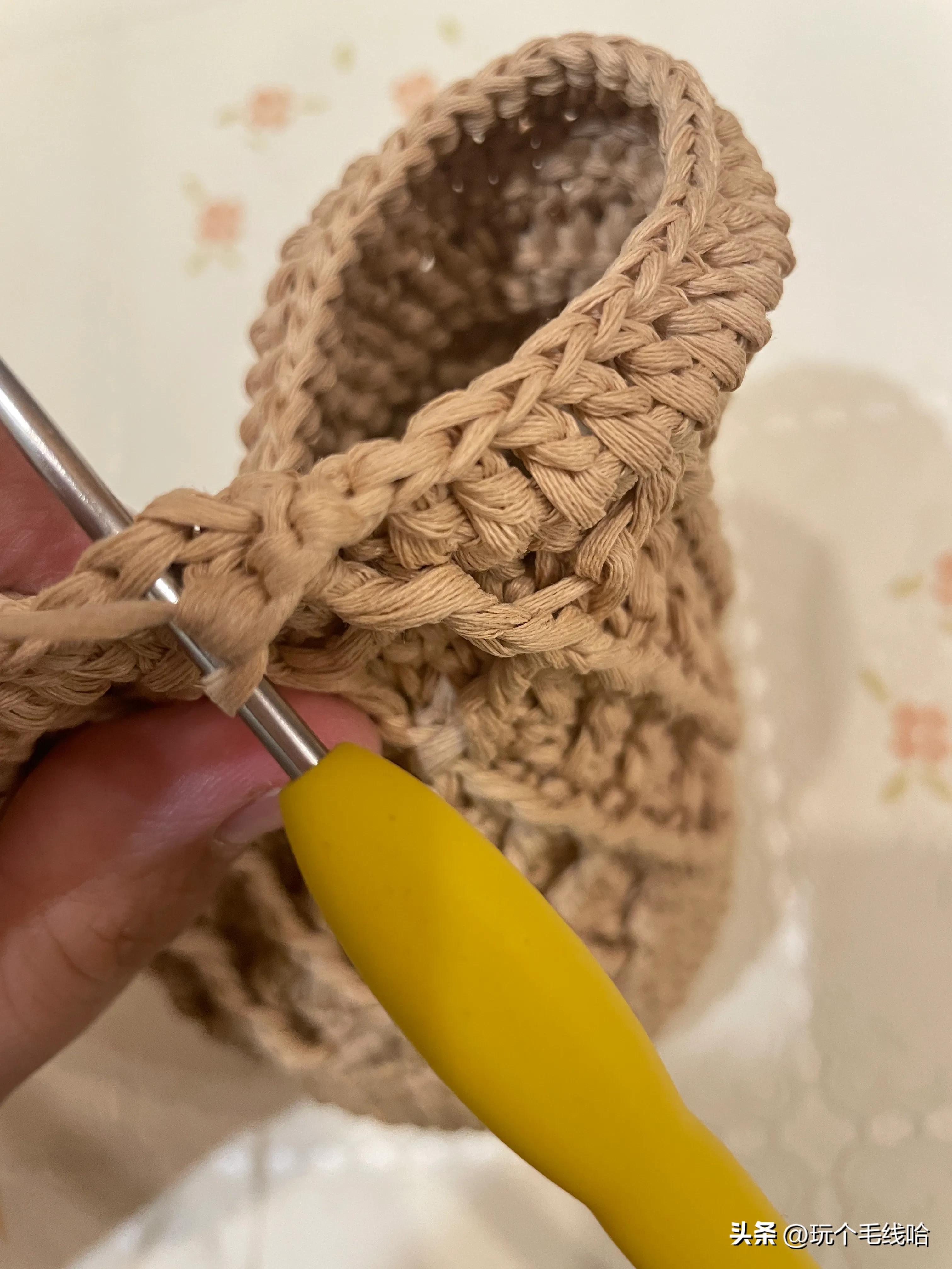 第九圈:不加不减钩一圈短针,总计56针。