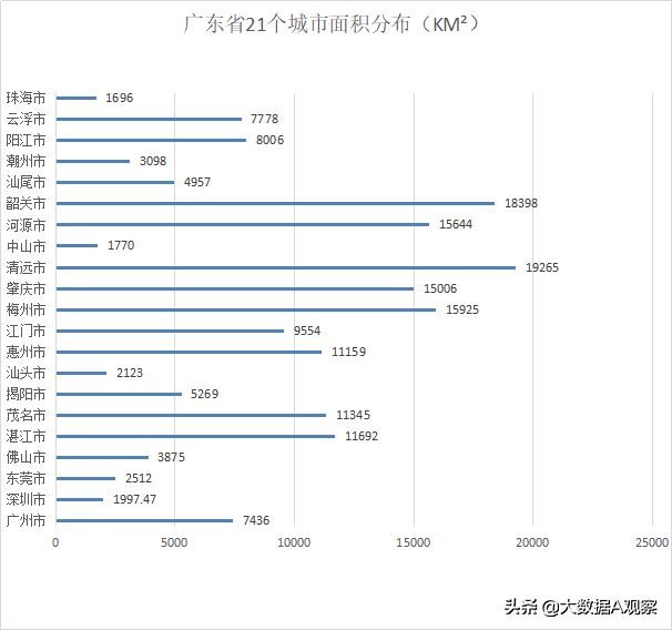 一、广东21座城市面积分布