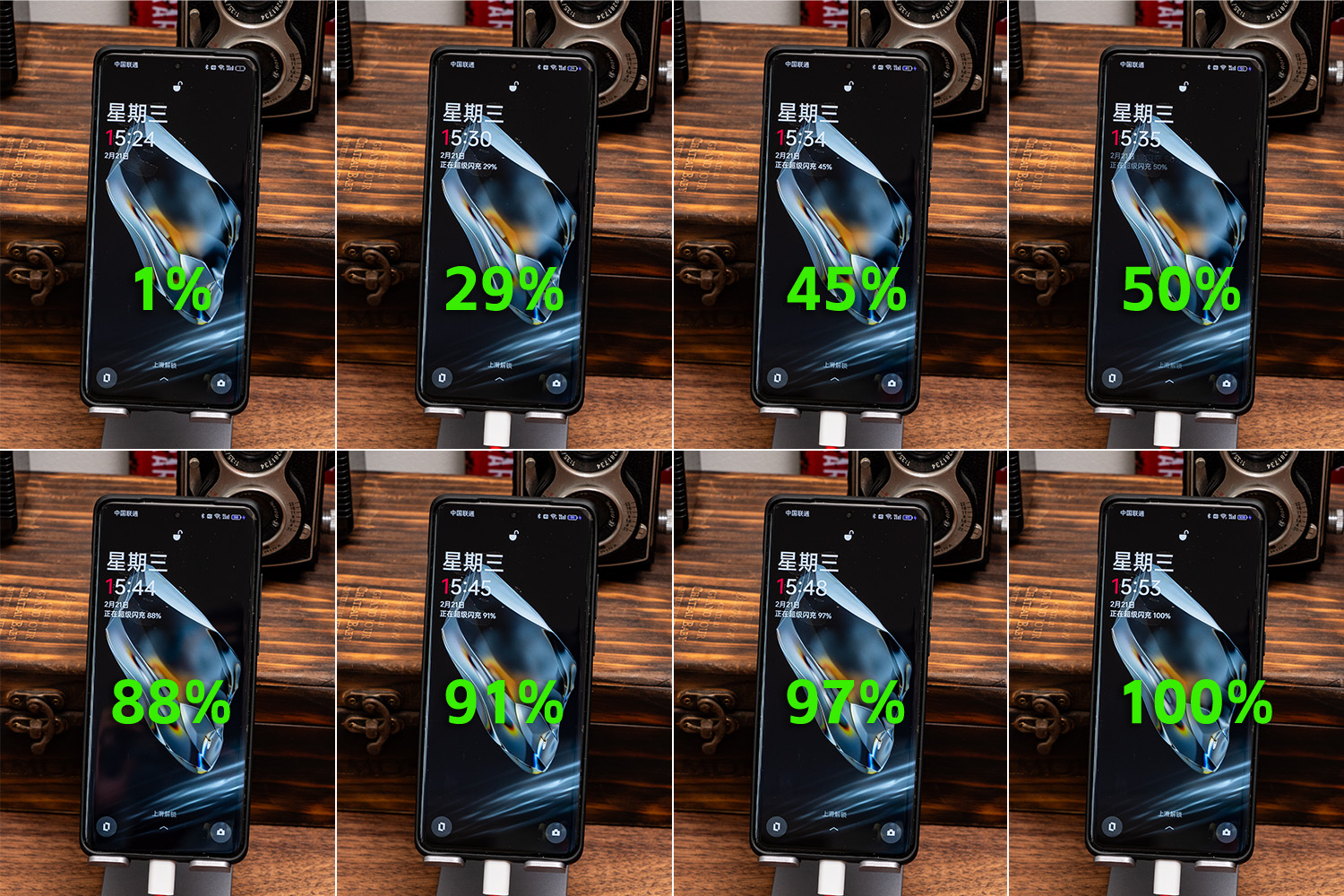 剩余电量1%,15:24开始充电,原装充电器+充电线,15:53分充到100%,耗时29分钟。